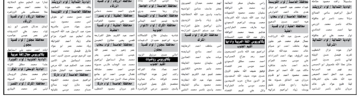 دعا ديوان الخدمة المدنية، اليوم الثلاثاء، بالتنسيق مع وزارة التربية والتعليم، استناداً لتعليمات اختيار وتعيين الموظفين في الوظائف الحكومية المرشحين التالية أسماؤهم أدناه من حملة شهادة البكالوريوس في التخصصات المبينة في الإعلان، التواجد في مبنى ديوان الخدمة المدنية الكائن في طبربور – شارع الأقصى، لحضور الامتحان التنافسي الإلكتروني.