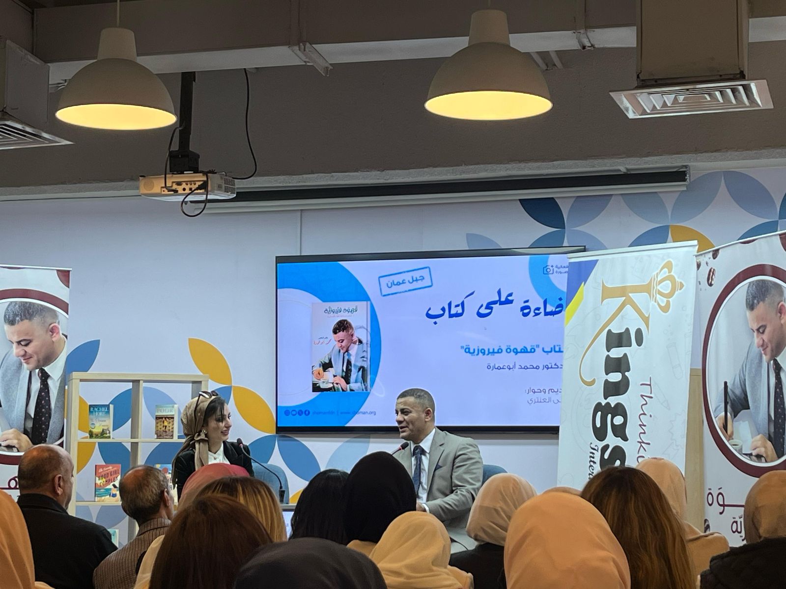 أحبار اليوم - استضافت مكتبة عبد الحميد شومان / جبل عمان ... أمسية أدبية ثقافية . نوقش فيها الإصدار الجديد للدكتور محمد أبو عمارة ، حيث أستهل الحفل ، بكلمة تأييد و ولاء لجلالة الملك عبد الله الثاني المعظم حفظه الله ..