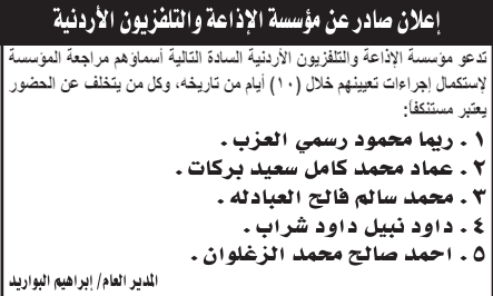 أخبار اليوم - دعت عددا من وزارات ومؤسسات الحكومية التالية اسماؤهم لاجراء المقابلات الشخصية، بهدف استكمال اجراءات التعيين وتقديم الامتحان التنافسي.وكما أعلنت عدداً من المؤسسات والبلديات، اليوم الخميس، عن حاجتها لتعبئة وظائف شاغرة.