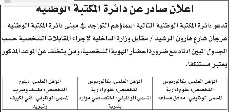 أخبار اليوم - أعلنت عدد من الدوائر الحكومية اليوم الثلاثاء، عن حاجتها لملء شواغر في وظائف مختلفة.كما دعت مؤسسات أخرى عدد من الناجحين في امتحانات الكفايات إلى إجراء المقابلات الشخصية كاختبارٍ ثانٍ للتعيين.