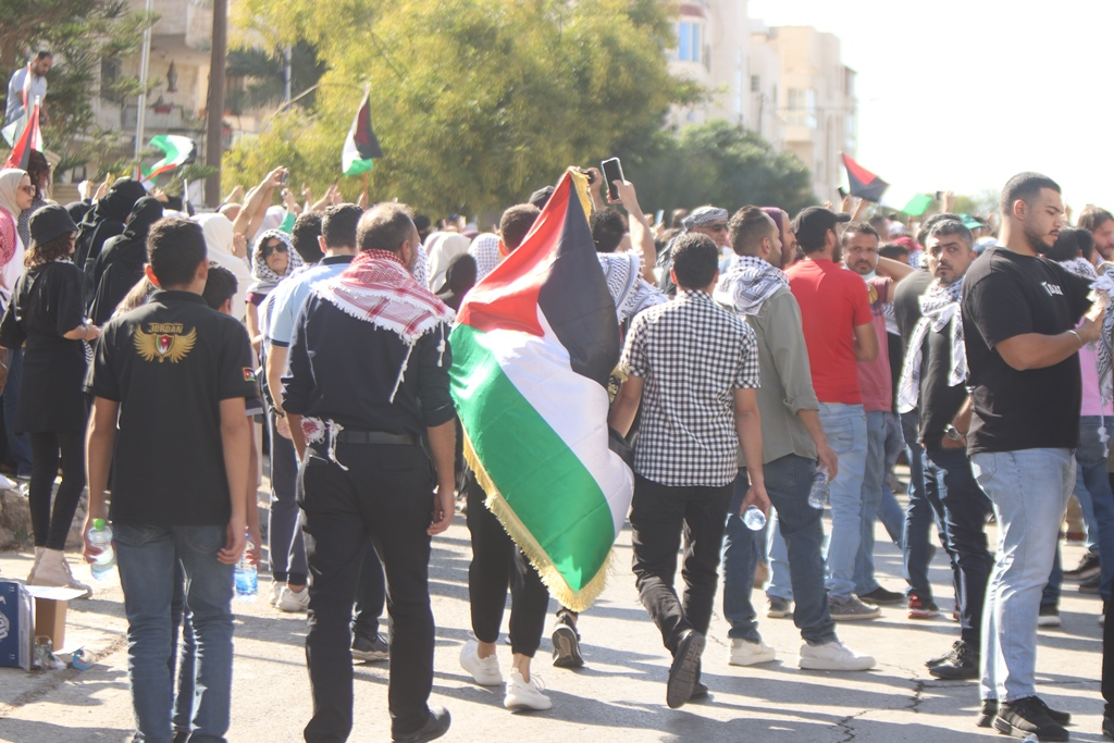 ورفع المشاركون العلمين الأردني والفلسطيني، ونظمت الوقفة فعاليات حزبية وشبابية في منطقة الرابية غرب عمّان.