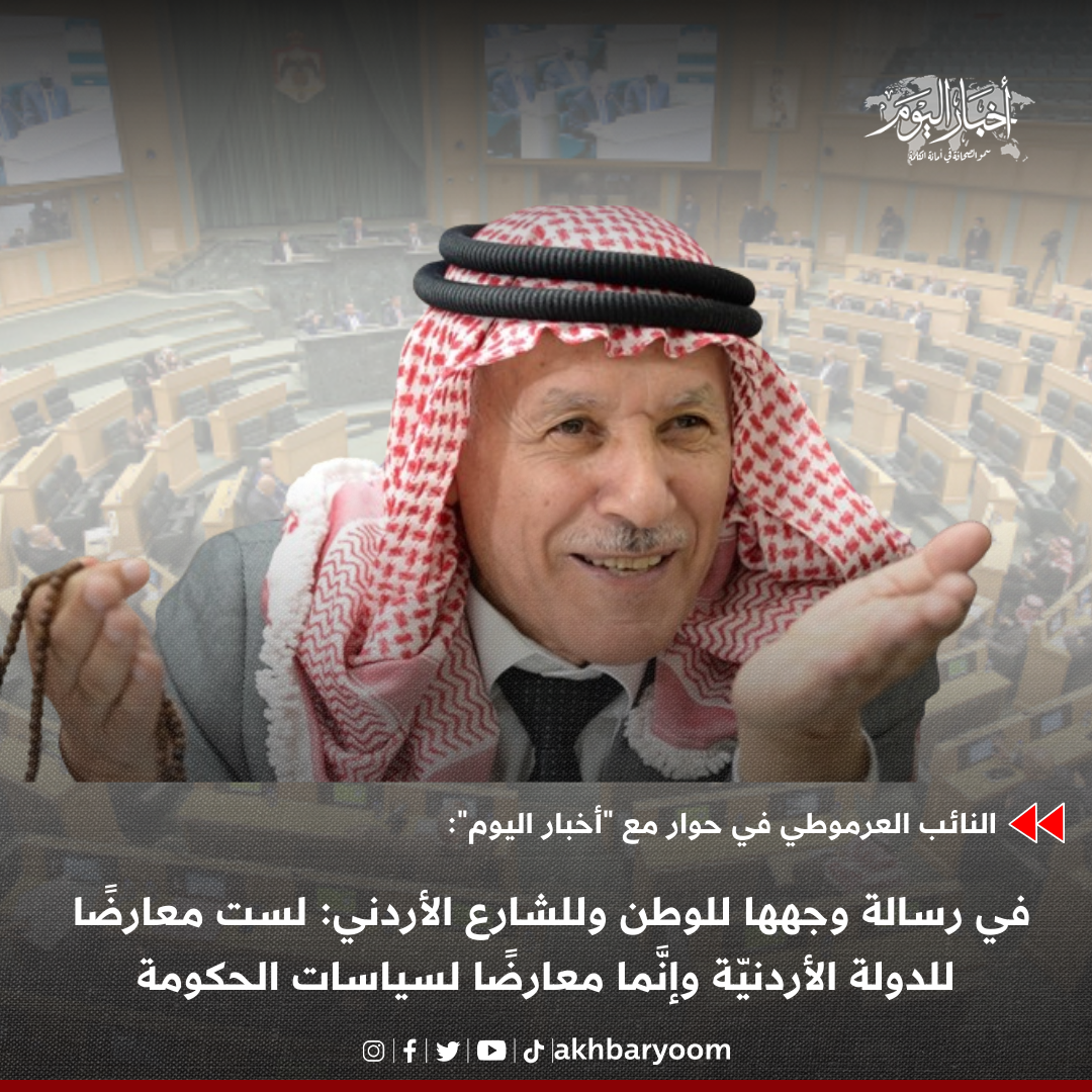 بدورها، تواصلت "أخبار اليوم" مع النائب العرموطي؛ للوقوف على سبب قراره، وللإجابة عن بعض الأسئلة التي تُعنى بالنائب، والتي وردت لـ" أخبار اليوم" من مواطنين.