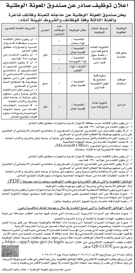 وكما دعت عددا من المؤسسات الحكومية عن توفر شواغر وظيفية لديها.