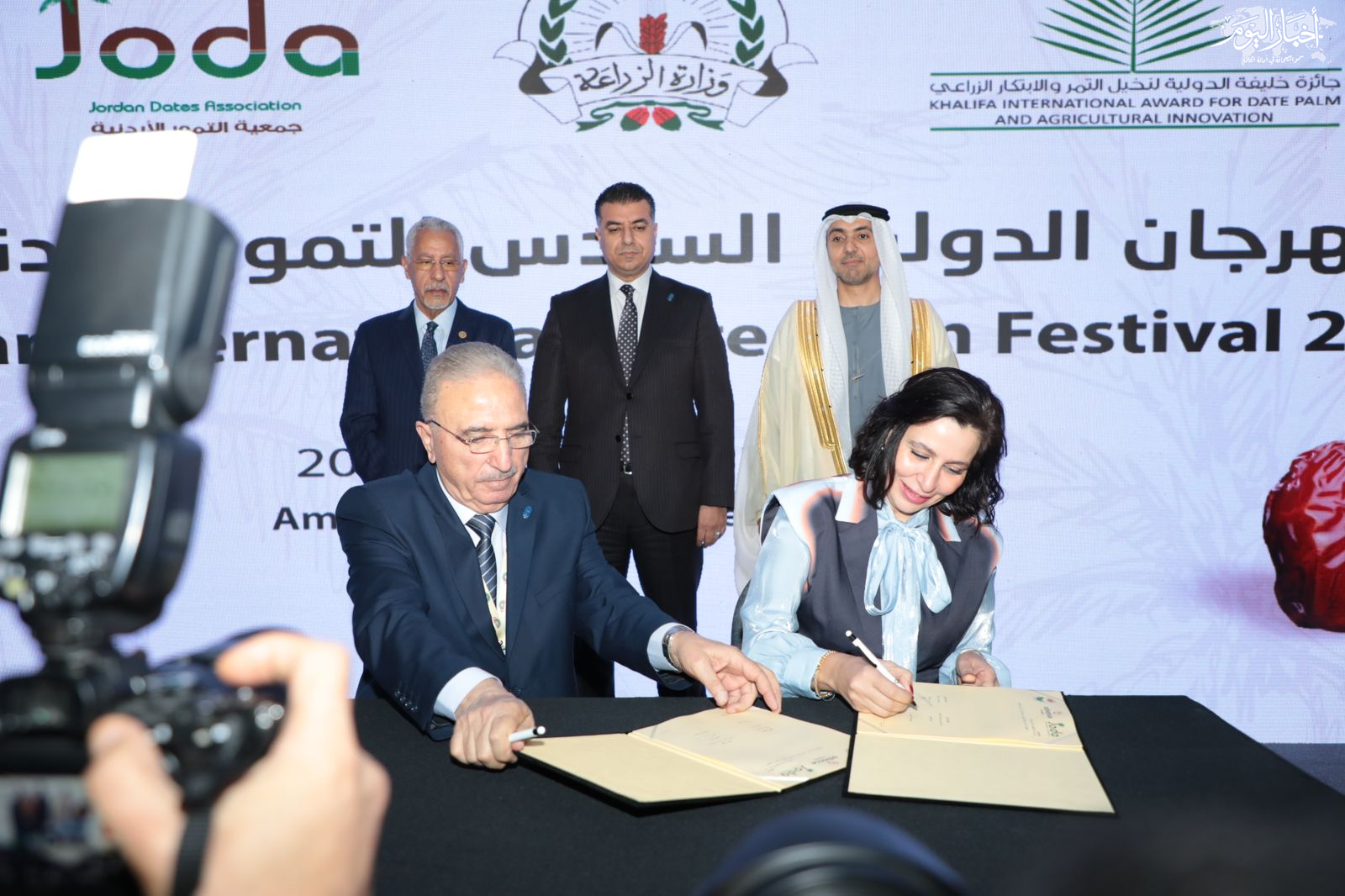 كما جرى توقيع 3 مذكرات تفاهم بين جمعية التمور الأردنية وعدد من الجهات ذات العلاقة في مجال زراعة النخيل وإنتاج التمور .